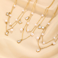 ペンダントネックレスレディース二層ステンレス鋼パールチャームホワイトシェル蝶ペンダントペンダント